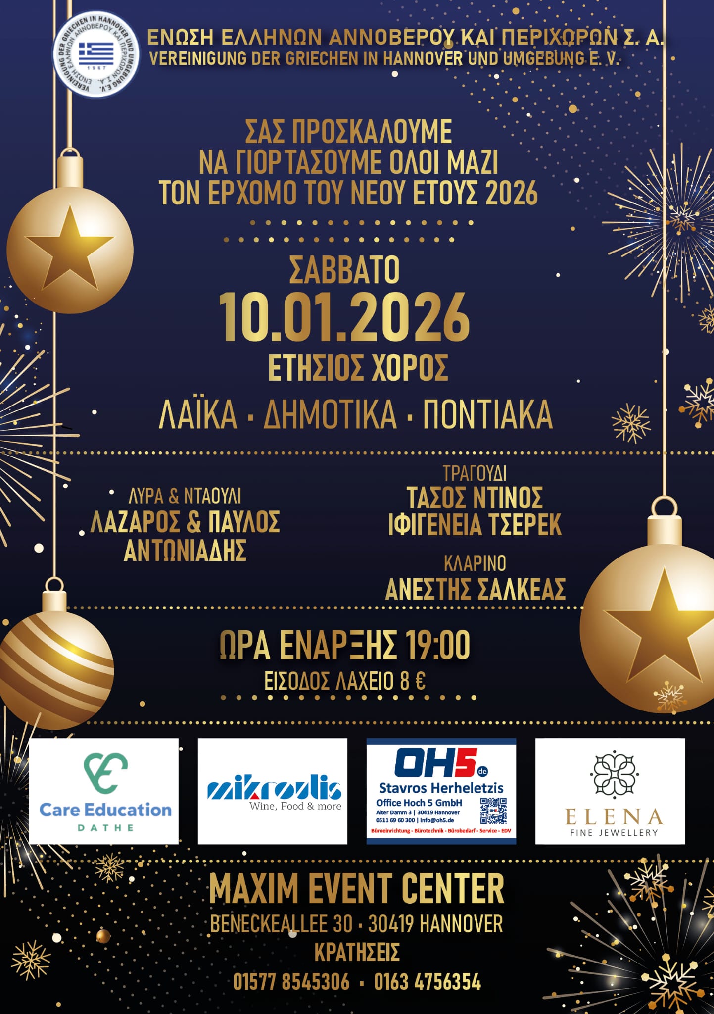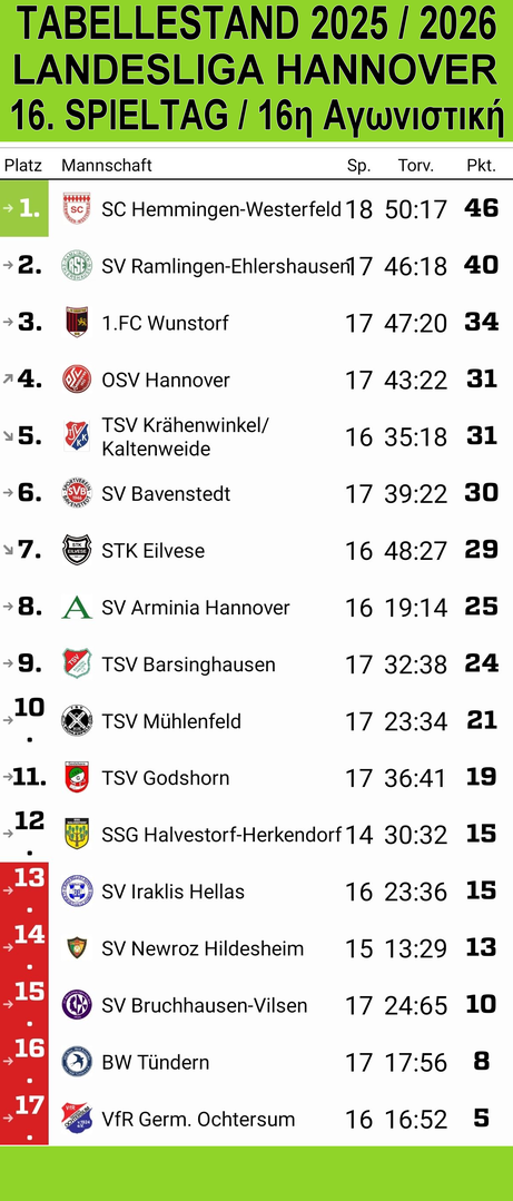 | Der SV Iraklis Hellas bedankt sich bei den Mitgliedern und Zuschauern für die Treue und Unterstützung im vergangenen Jahr. Ihnen und Ihren Angehörigen wünschen wir besinnliche Festtage. Frohe Weihnachten und alles Gute im 2026. Bleiben Sie Gesund! Το Ελληνικό Αθλητικό Σωματείο Ηρακλής Ελλάς Αννοβέρου εκφράζει τις θερμές του ευχαριστίες στα Μέλη και στους φιλάθλους του, για την αμέριστη συμπαράσταση και την υποστήριξη. Καλά Χριστούγεννα σε εσάς και την οικογένειά σας. Ας ελπίσουμε ότι το ξεκινημα της Νέας Χρονιάς να ειναι αφετηρία μίας δημιουργικής εποχής. Χρόνια πολλά και ευτυχισμένο το 2026. | ||