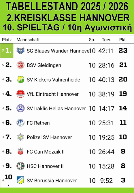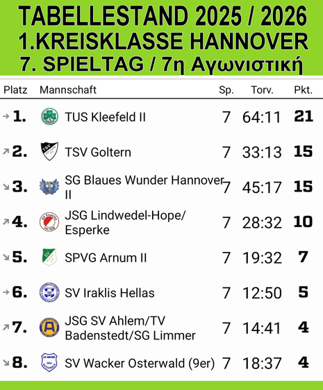 | Der SV Iraklis Hellas bedankt sich bei den Mitgliedern und Zuschauern für die Treue und Unterstützung im vergangenen Jahr. Ihnen und Ihren Angehörigen wünschen wi alles Gute im 2026. Bleiben Sie Gesund! Το Ελληνικό Αθλητικό Σωματείο Ηρακλής Ελλάς Αννοβέρου εκφράζει τις θερμές του ευχαριστίες στα Μέλη και στους φιλάθλους του, για την αμέριστη συμπαράσταση και την υποστήριξη. Ας ελπίσουμε ότι το ξεκινημα της Νέας Χρονιάς να ειναι αφετηρία μίας δημιουργικής εποχής. Χρόνια πολλά και ευτυχισμένο το 2026. |